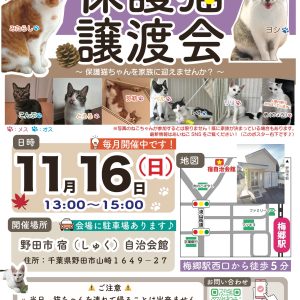 11月16日保護猫譲渡会 宿自治会館